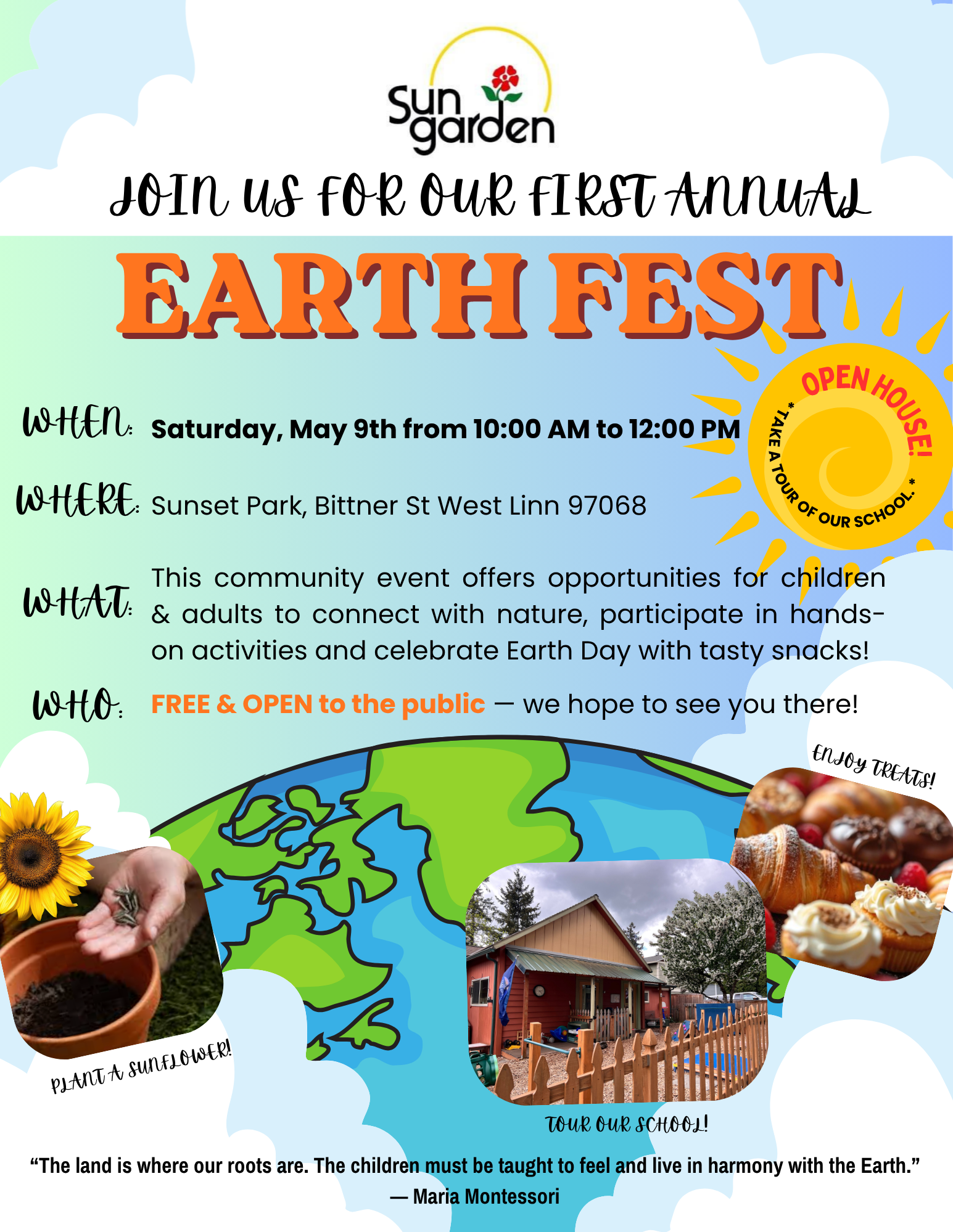 Contact us today at 503.655.2609 / or email: admissions@sungardenmontessori.org