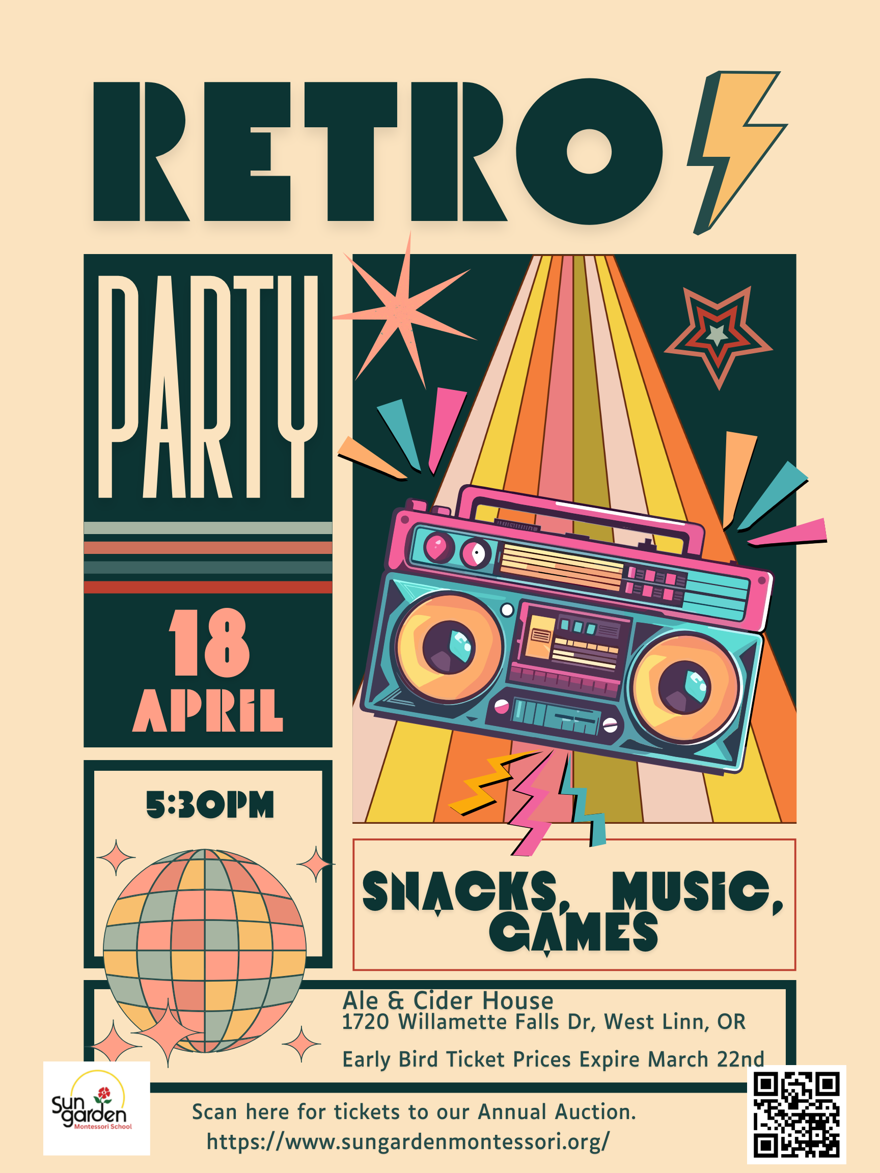 SunGarden Montessori's 2026 Annual Auction is on April 18th at 5:30 PM, held at the Ale and Cider House! This is a great opportunity to come together as a community, support our incredible school, and raise money for programs that benefit our students. Whether you're there to bid on amazing items, enjoy some tasty food, or just have a good time with friends, your participation will make a difference. We can't wait to see you there!